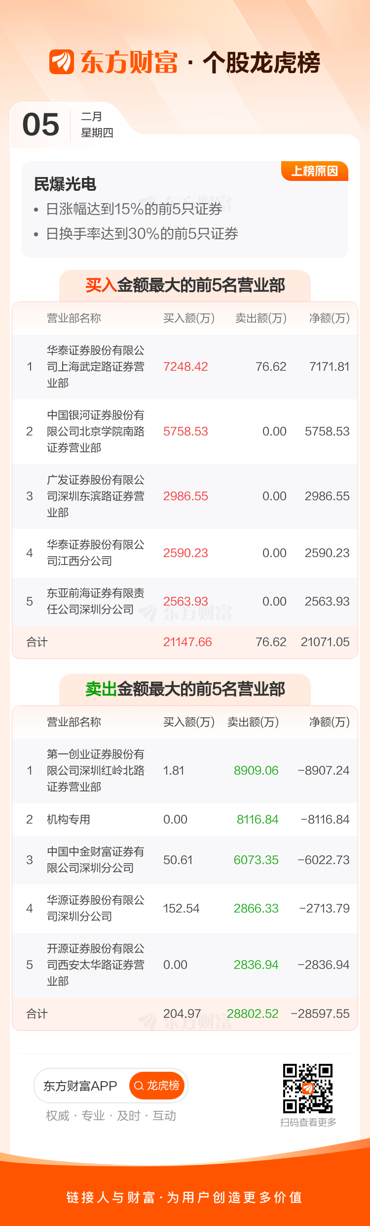 民爆光电(301362)龙虎榜数据(02-05)