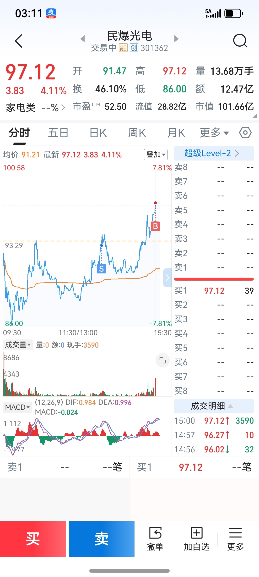 $民爆光电(SZ301362)$ 有没有人跟我一样。瞎操作。
