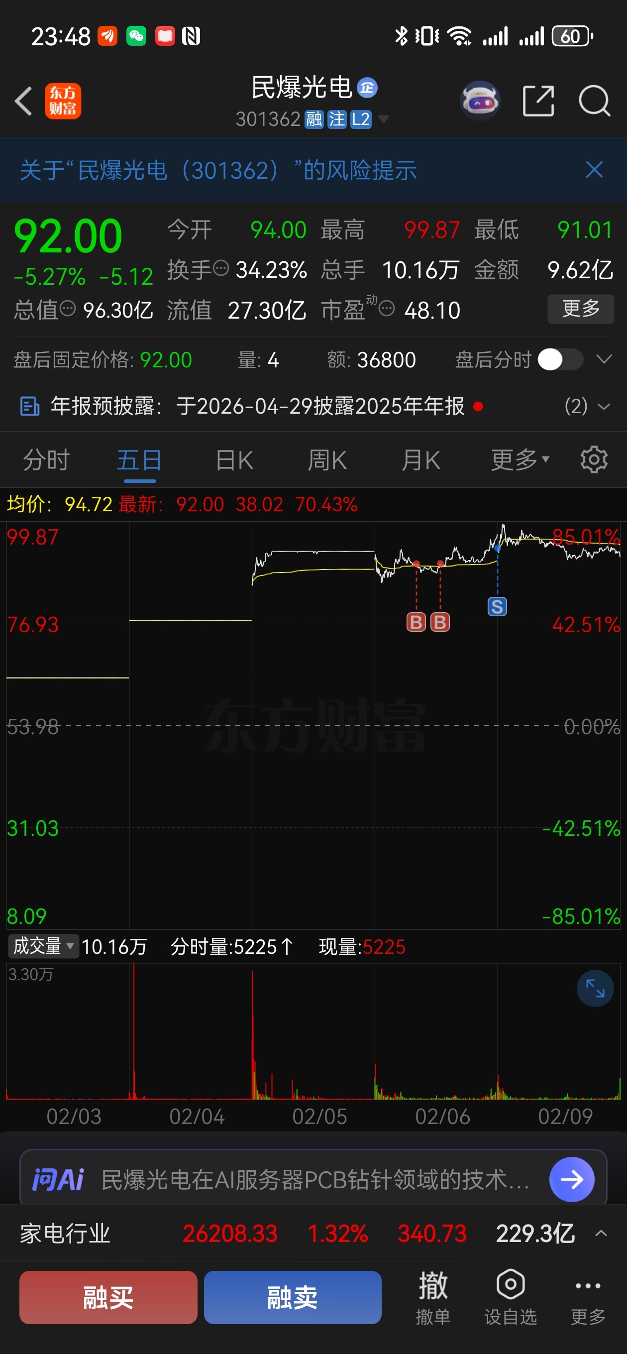 $民爆光电(SZ301362)$ 开盘就跑,错失了高点