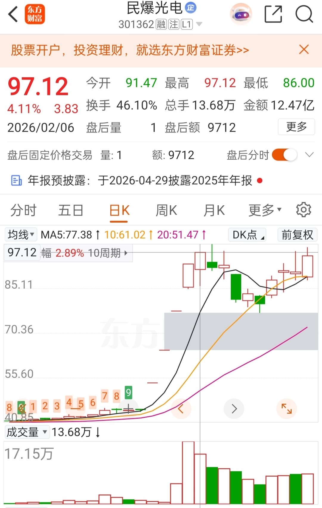 $民爆光电(SZ301362)$ 真搞不懂那么多人想着回调,这股今天是缩量试探前高,基本也算过前高收盘价了,为何会看跌呢?