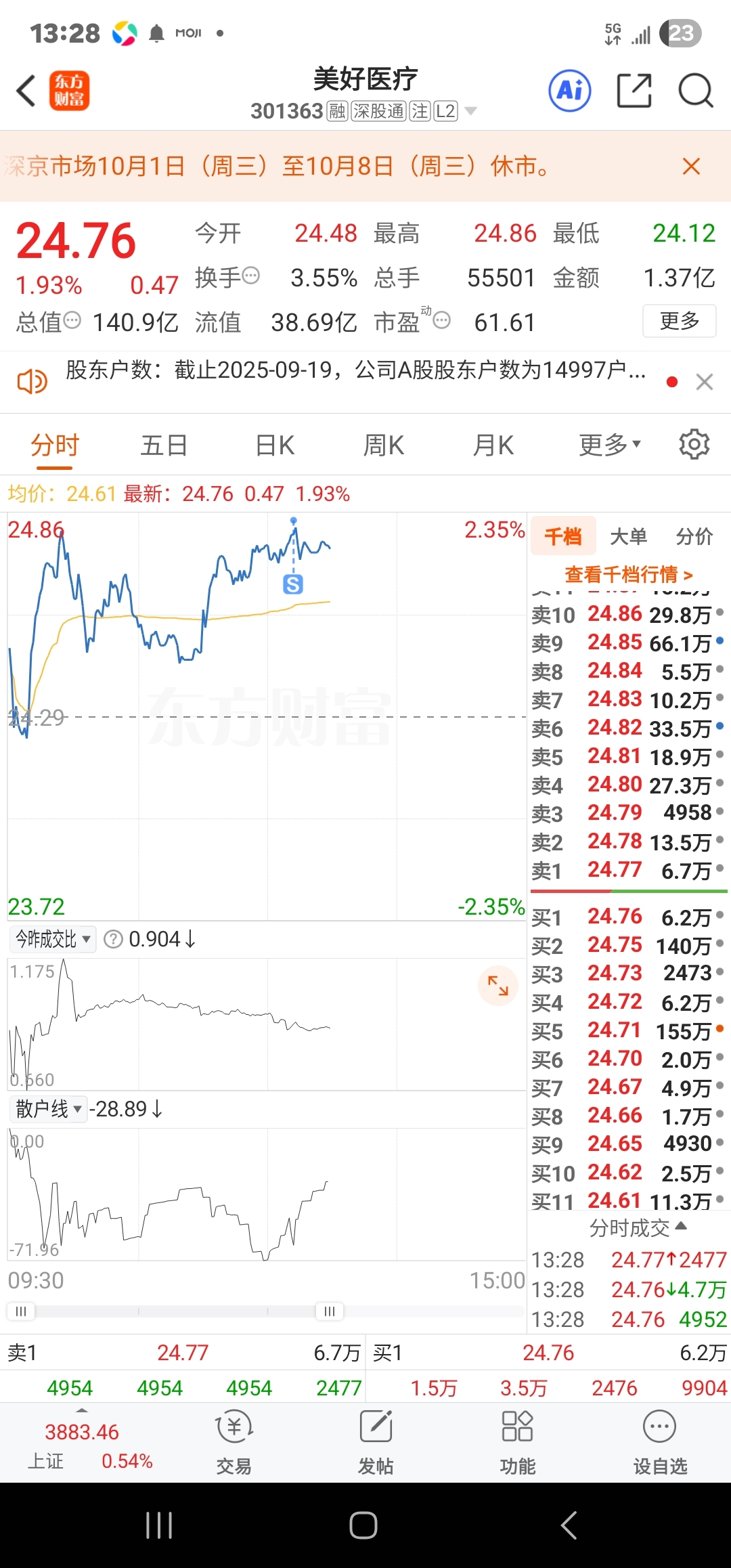 $美好医疗(SZ301363)$ 兄弟们,不好意思,我做空了