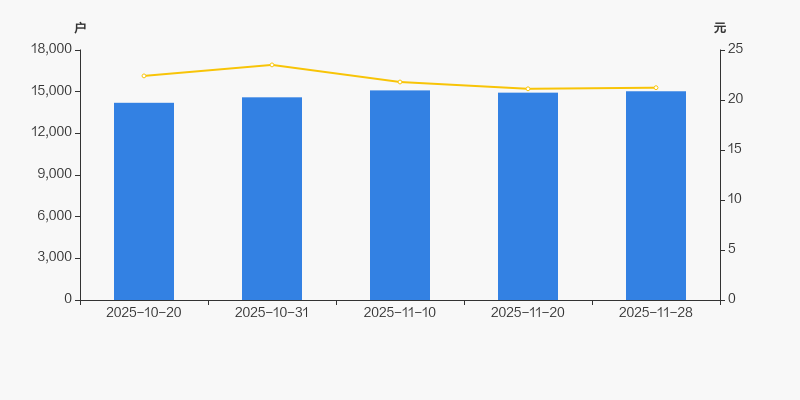 2025年10月20日至今,公司股东户数有所增长,区间涨幅为5.85%。2025年10月20日至2025年11月28日区间股价下降5.27%。