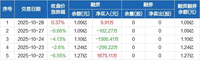 矩阵股份:融资净买入9.91万元,融资余额1.09亿元(10-28)