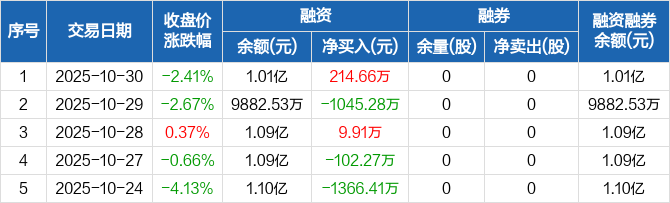 矩阵股份:融资净买入214.66万元,融资余额1.01亿元(10-30)