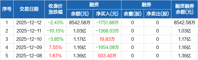 矩阵股份:融资净偿还1751.88万元,融资余额8542.58万元(12-12)