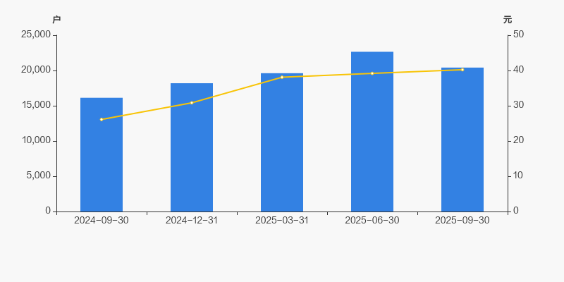 2024年9月30日至今,公司股东户数显著增长,区间涨幅为26.56%。2024年9月30日至2025年9月30日区间股价上涨54.04%。