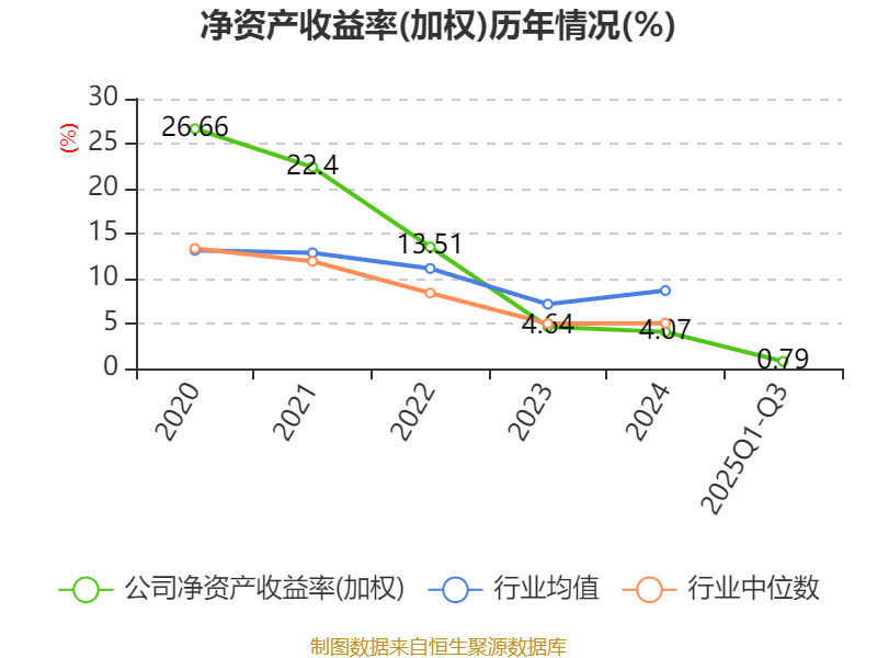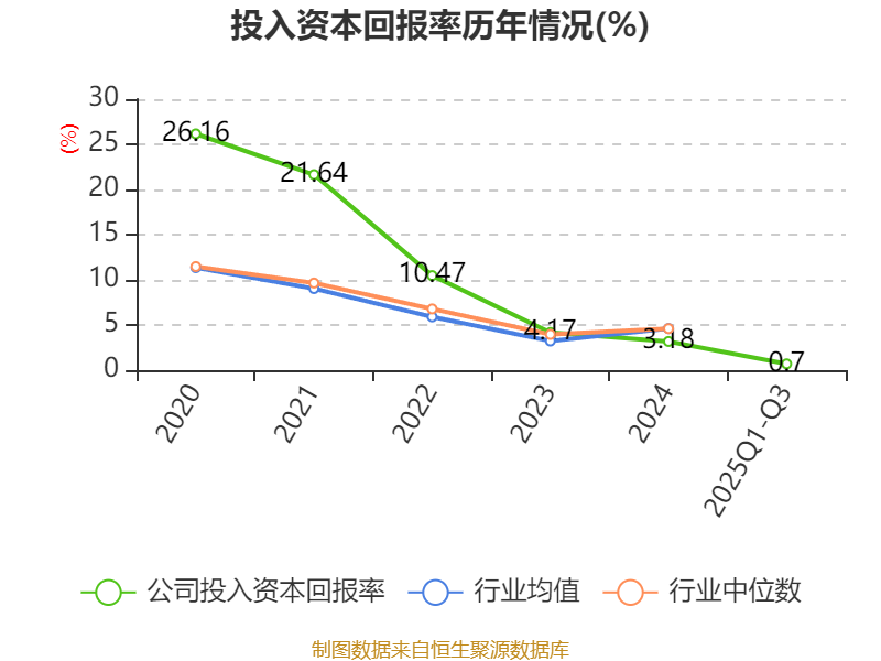 盈利能力方面, 2025年前三季度公司加权平均净资产收益率为0.79%,同比下降2.95个百分点。公司2025年前三季度投入资本回报率为0.7%,较上年同期下降2.53个百分点。