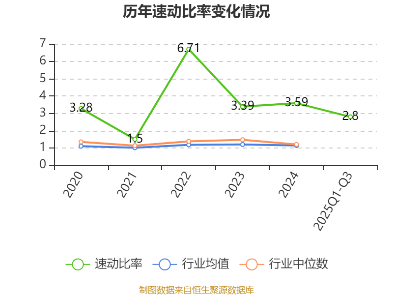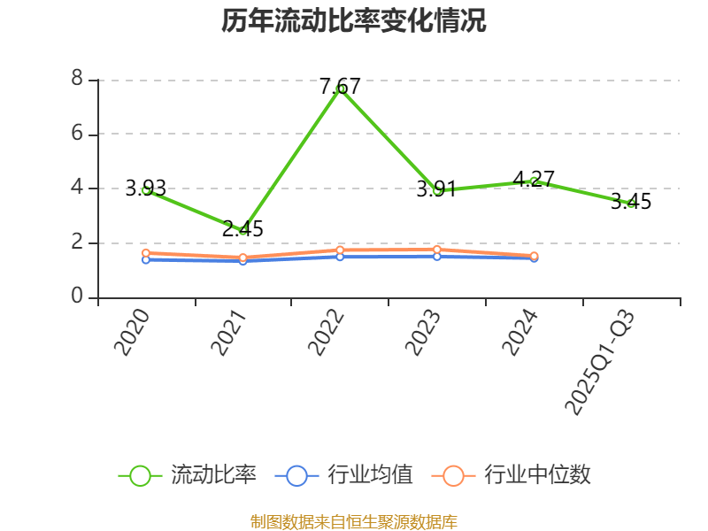 2025年前三季度,公司流动比率为3.45,速动比率为2.8。