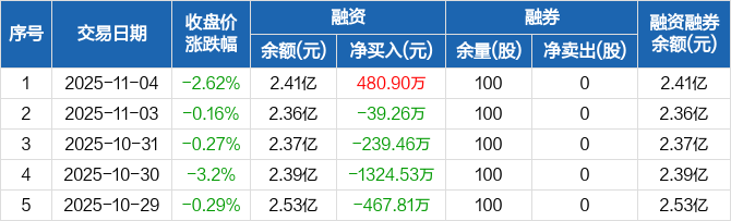 一博科技:融资净买入480.9万元,融资余额2.41亿元(11-04)