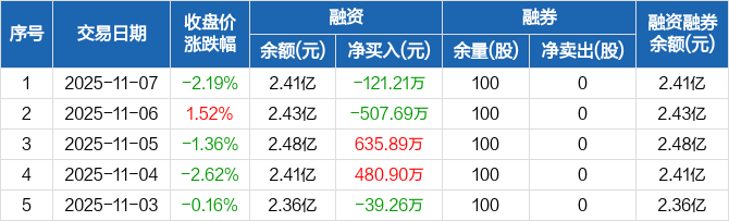 一博科技:融资净偿还121.21万元,融资余额2.41亿元(11-07)