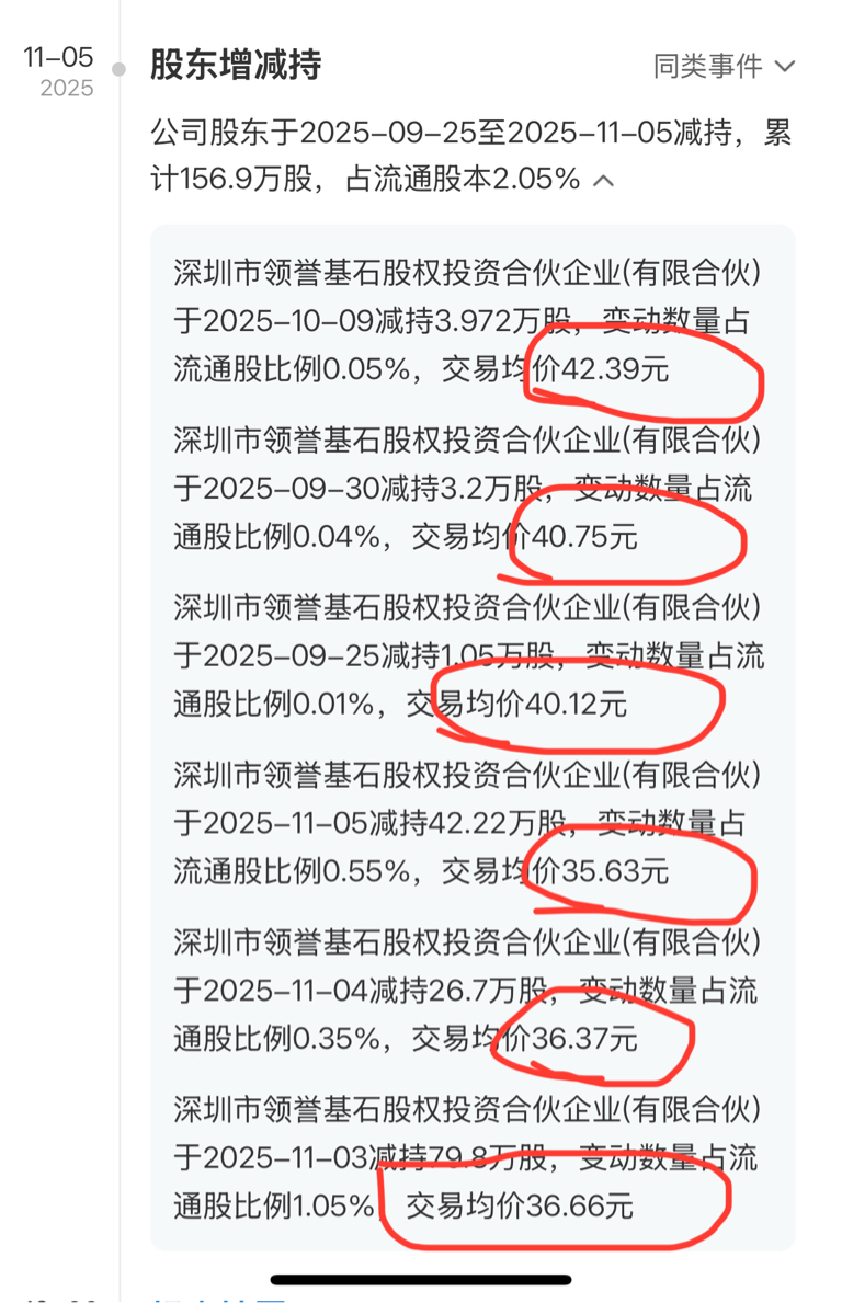 $一博科技(SZ301366)$ 鸡石上一轮的减持平均股价是36.58元,减持范围从35.63到42.39元之间!再加上这一轮减持,鸡石这个小非应该是要彻底退出一博了,真是一次成功的股权投资,如今到摘果实的时候了!