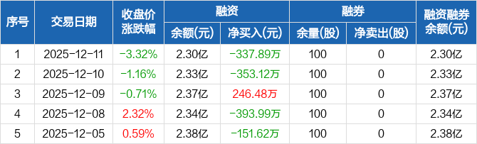 一博科技:融资净偿还337.89万元,融资余额2.3亿元(12-11)