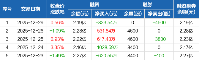 一博科技:融资净偿还833.54万元,融资余额2.19亿元(12-29)