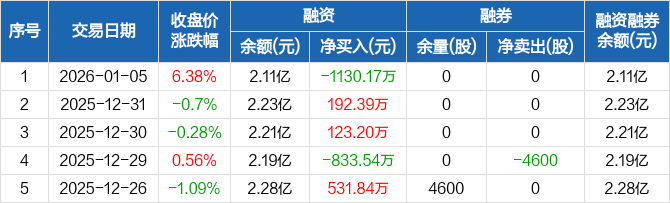 一博科技:融资净偿还1130.17万元,融资余额2.11亿元(01-05)