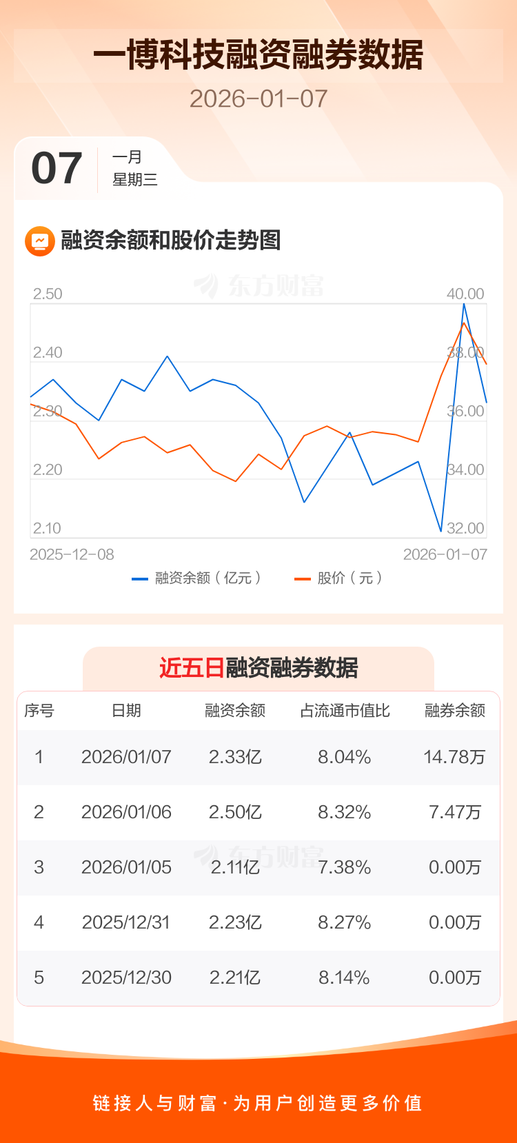 交易所最新数据显示,一博科技于2026年1月7日获融资买入2879.50万元,融资偿还4590.09万元,当日融资净偿还1710.59万元。目前,该股融资余额2.33亿,占流通市值比例为8.04%。