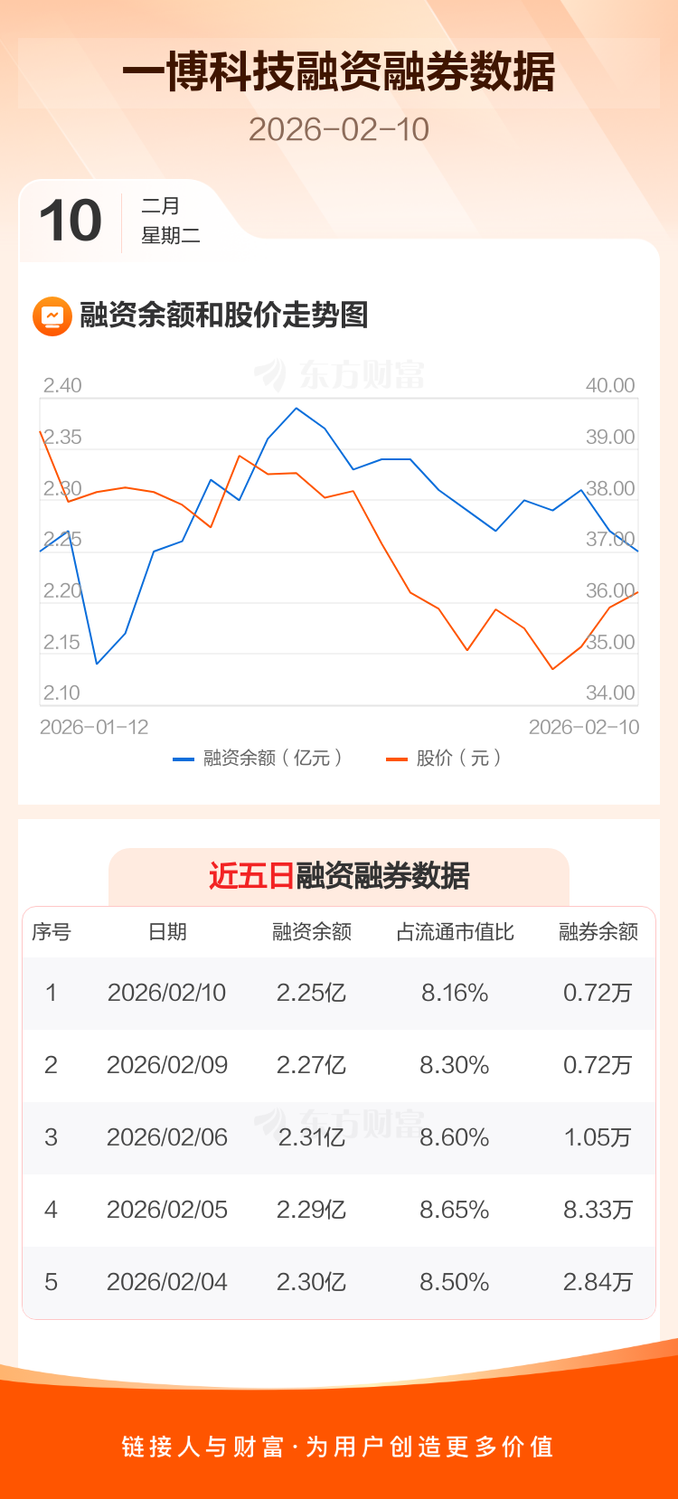 交易所最新数据显示,一博科技于2026年2月10日获融资买入626.66万元,融资偿还828.58万元,当日融资净偿还201.92万元。目前,该股融资余额2.25亿,占流通市值比例为8.16%。