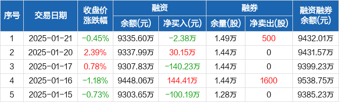 怡和嘉业:融资净偿还2.38万元,融资余额9335.6万元(01-21)
