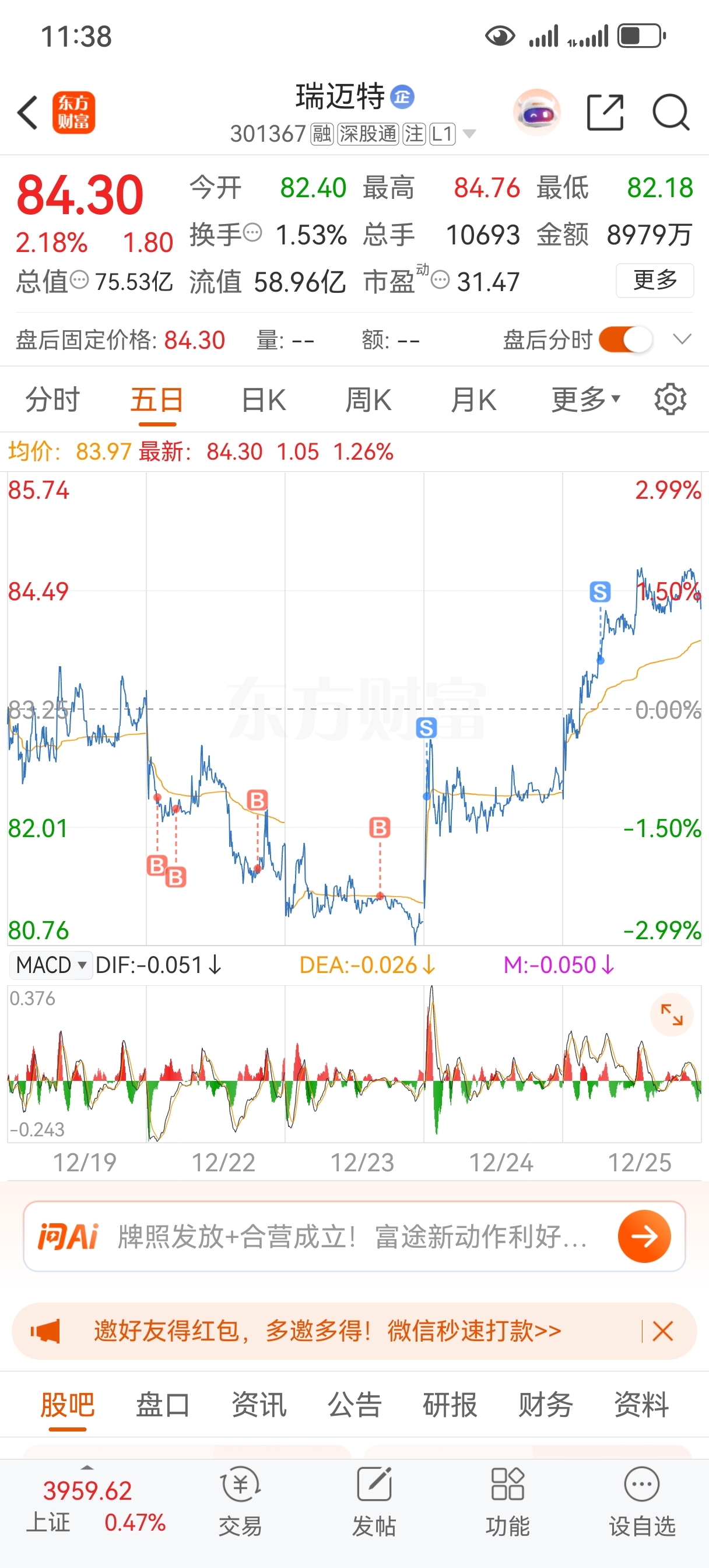 $瑞迈特(SZ301367)$ 主升浪开始,99见