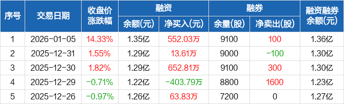 瑞迈特:连续3日融资净买入累计1218.45万元(01-05)