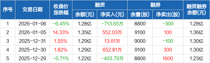 瑞迈特:融资净偿还713.65万元,融资余额1.28亿元(01-06)