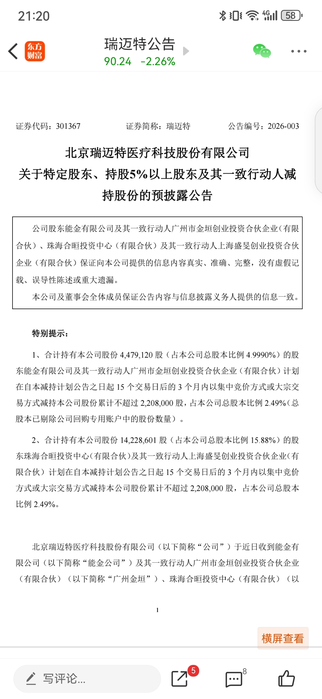 $瑞迈特(SZ301367)$ 好公司,基本面一流,“天使”投资人减持一波接一波,降维打击,关注80元“底线”!