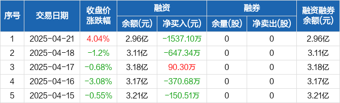 丰立智能:融资净偿还1537.1万元,融资余额2.96亿元(04-21)