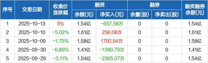 联动科技:融资净偿还657.58万元,融资余额1.54亿元(10-13)