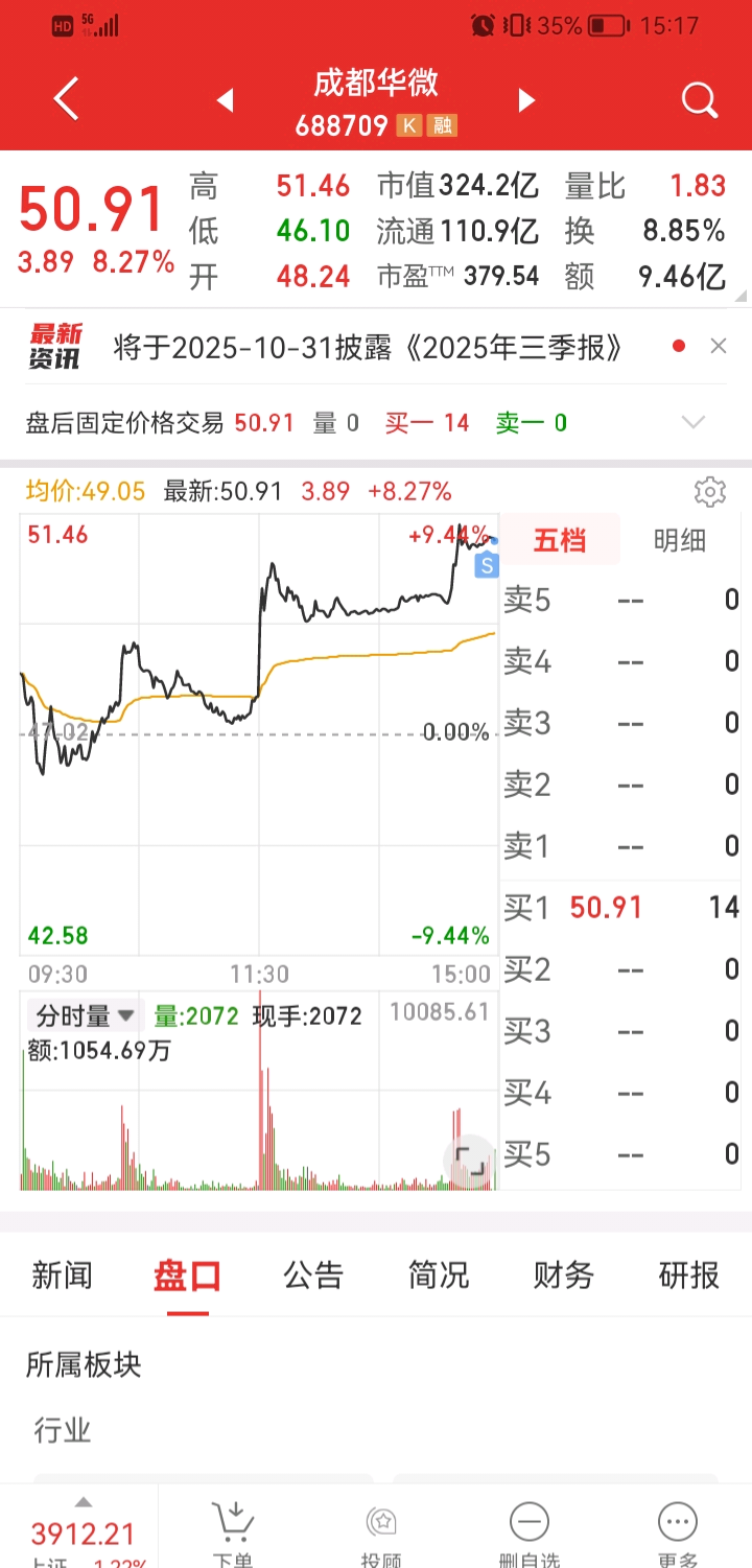 $联动科技(SZ301369)$ 尾盘清仓了,成都华微也一起清了,周一低开那么多挂单加仓没成功太可惜了,不然要多赚点明天去科创板抓一支半导体新龙头玩玩