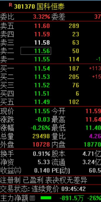 $国科恒泰(SZ301370)$ 主力撤退明显。