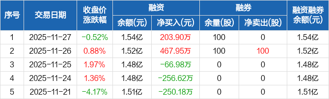 国科恒泰:融资净买入203.9万元,融资余额1.54亿元(11-27)