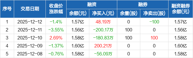 国科恒泰:融资净买入48.19万元,融资余额1.57亿元(12-12)