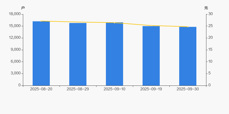 2025年8月20日至今,公司股东户数有所下降,区间跌幅为8.64%。2025年8月20日至2025年9月30日区间股价下降8.77%。