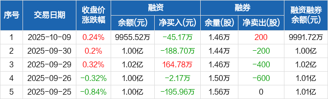 敷尔佳:融资净偿还45.17万元,融资余额9955.52万元(10-09)