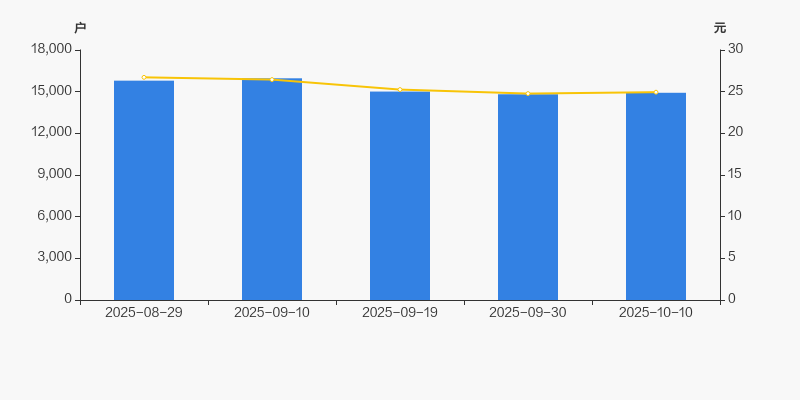 2025年8月29日至今,公司股东户数有所下降,区间跌幅为5.53%。2025年8月29日至2025年10月10日区间股价下降6.66%。