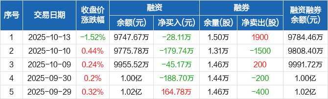 敷尔佳:连续4日融资净偿还累计441.72万元(10-13)