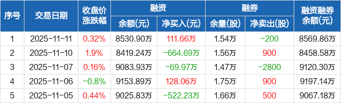 敷尔佳:融资净买入111.66万元,融资余额8530.9万元(11-11)