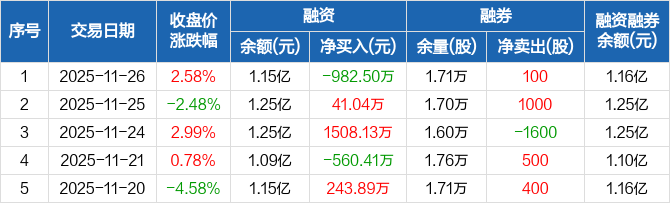 敷尔佳:融资净偿还982.5万元,融资余额1.15亿元(11-26)