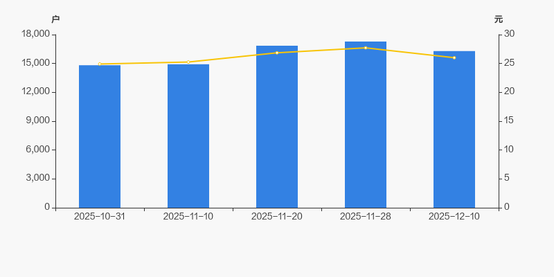 截至2025年12月10日,公司最新总股本为5.2亿股,其中流通股本为7752.94万股。户均持有流通股数量由上期的4486股上升至4759股,户均流通市值12.37万元。
