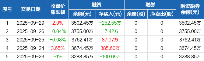 科净源:融资净偿还252.55万元,融资余额3502.45万元(09-29)