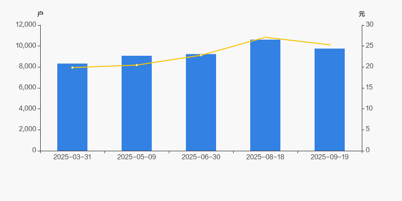 2025年3月31日至今,公司股东户数显著增长,区间涨幅为17.18%。2025年3月31日至2025年9月19日区间股价上涨27.44%。