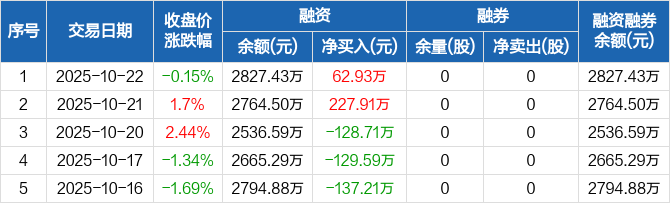 科净源:融资净买入62.93万元,融资余额2827.43万元(10-22)