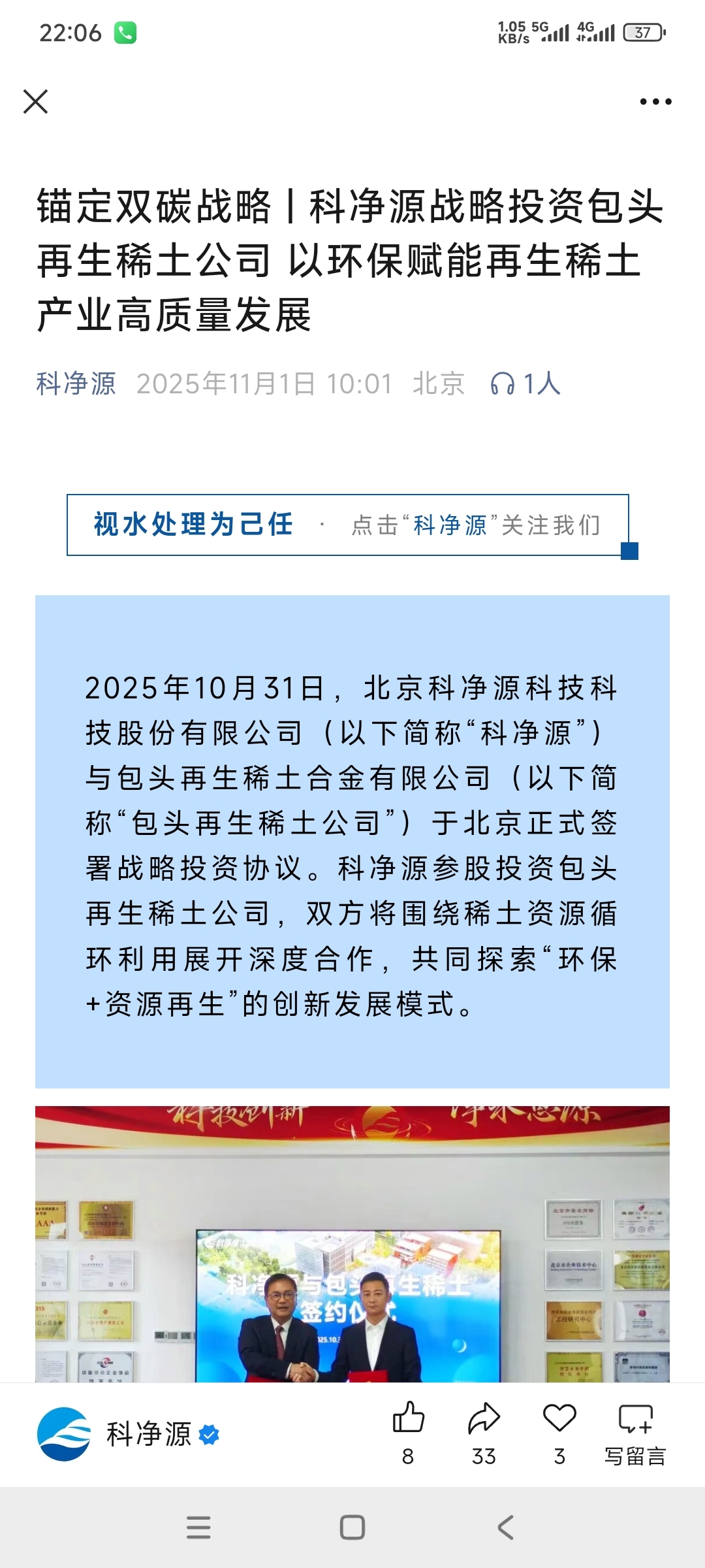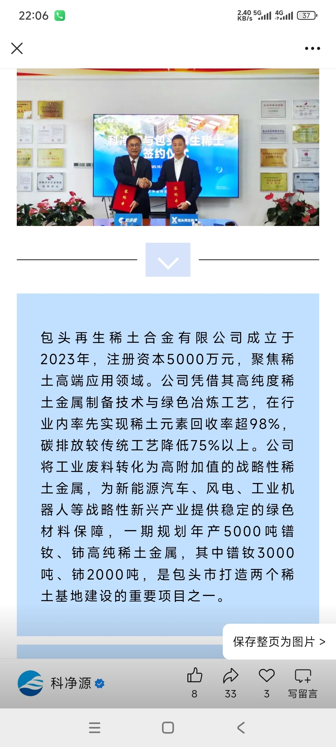 锚定双碳战略|科净源战略投资包头再生稀土公司以环保赋能再生稀土产业高质量发展