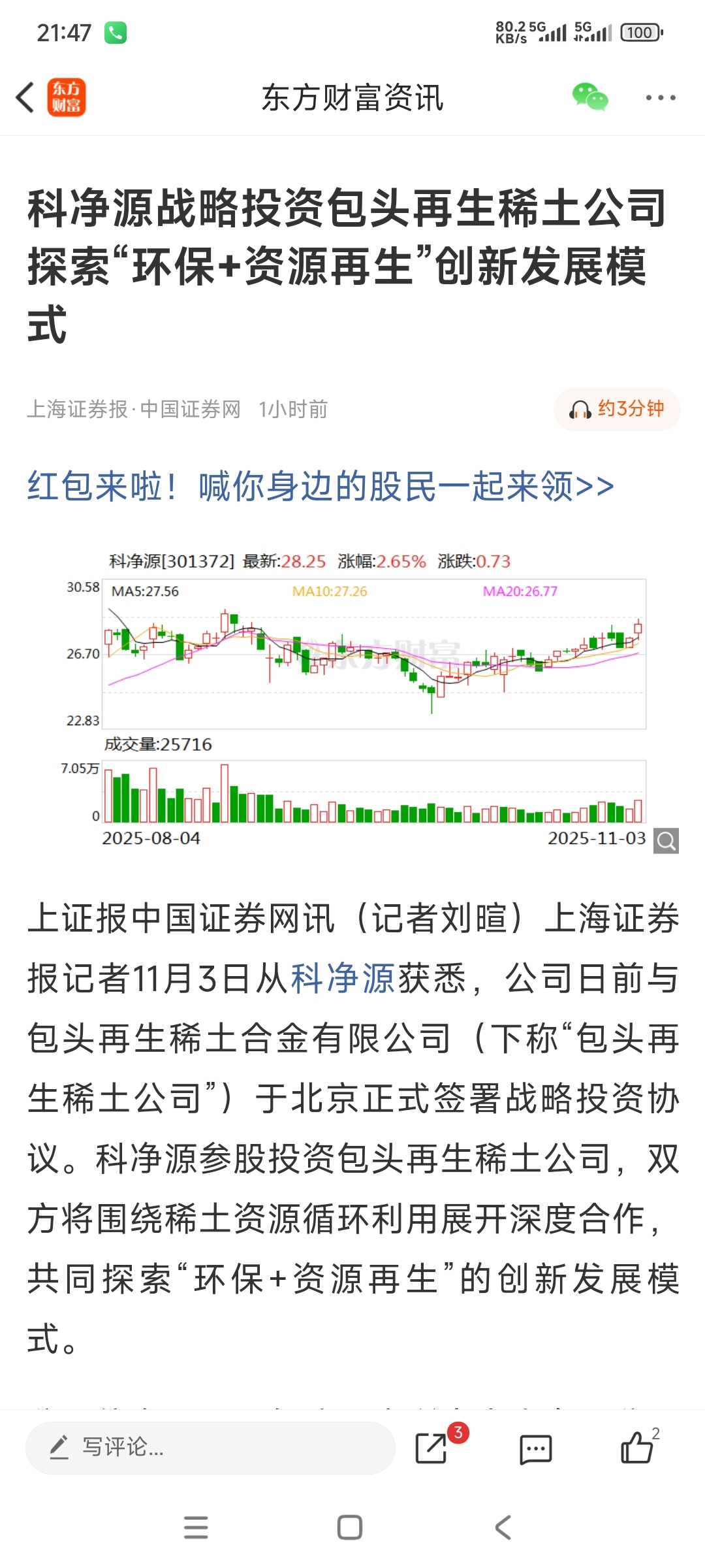 参股稀土公司,与包头稀土强强联手,1+1≥2,为国争光!