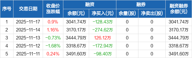 科净源:融资净偿还128.43万元,融资余额3041.74万元(11-17)