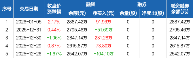 科净源:融资净买入91.96万元,融资余额2887.42万元(01-05)