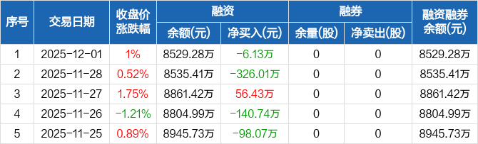凌玮科技:融资净偿还6.13万元,融资余额8529.28万元(12-01)