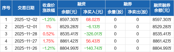 凌玮科技:融资净买入68.02万元,融资余额8597.3万元(12-02)