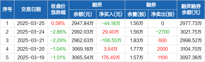 致欧科技:融资净偿还44.18万元,融资余额2947.84万元(03-25)