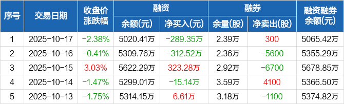 致欧科技:融资净偿还289.35万元,融资余额5020.41万元(10-17)