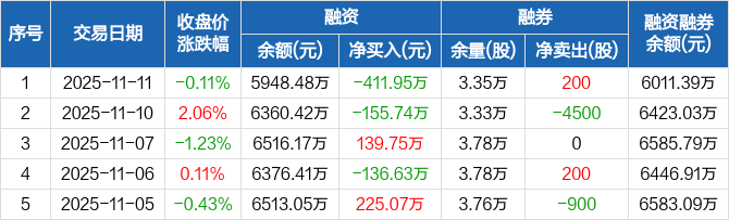 致欧科技:融资净偿还411.95万元,融资余额5948.48万元(11-11)